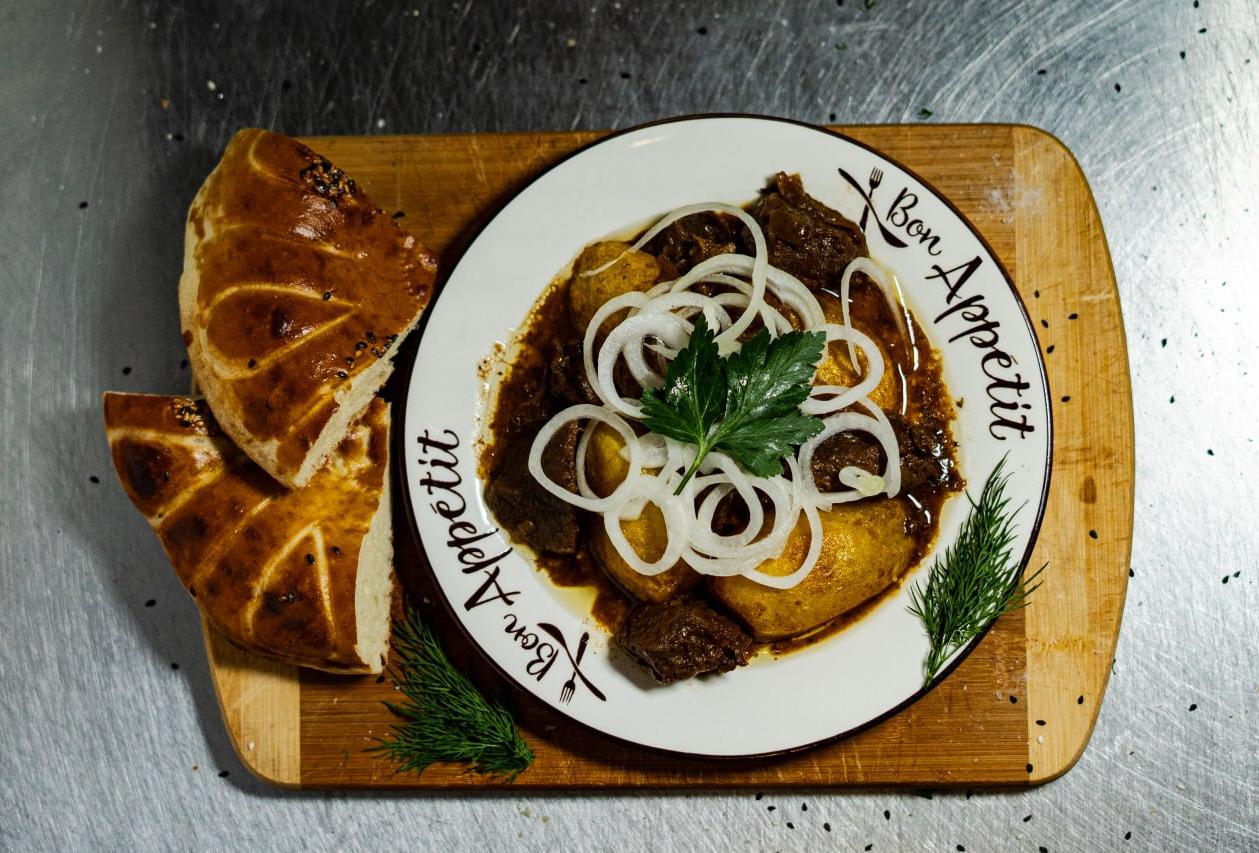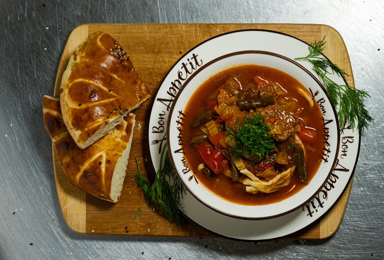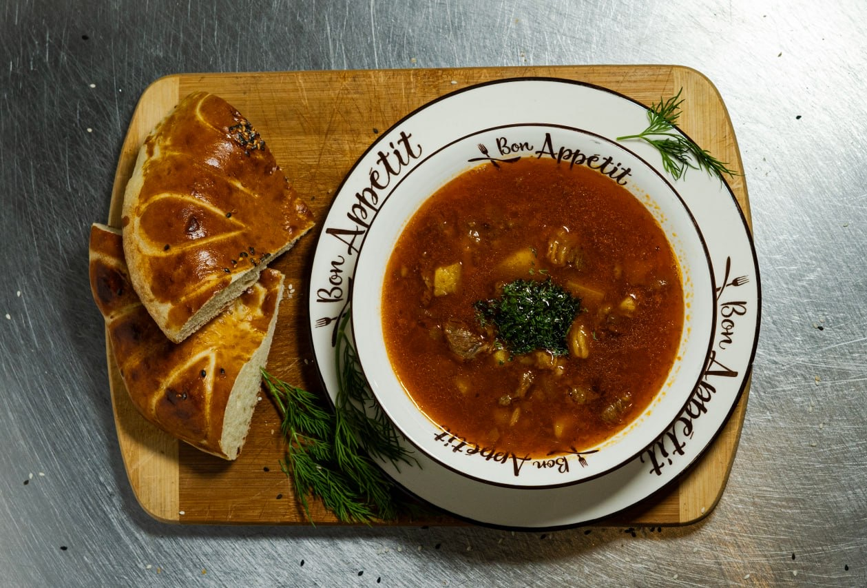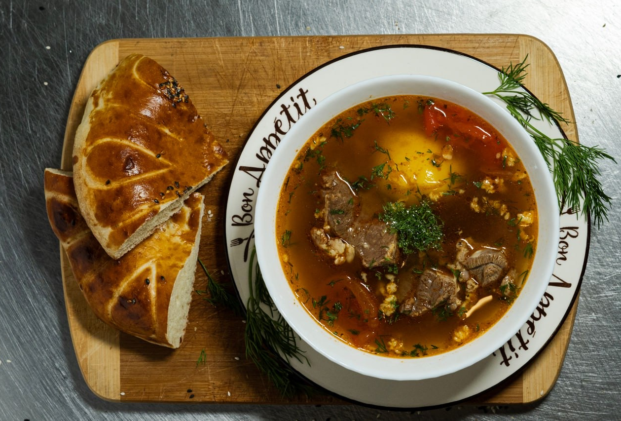Шурпа — традиционный восточный суп, приготовленный на крепком мясном бульоне с большим количеством нарезанных крупными кусочками овощей и мяса. Готовится с использованием баранины, лука, моркови, картофеля и пряных специй. Обладает ярким вкусом и ароматом, согревает и наполняет энергией.