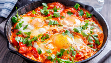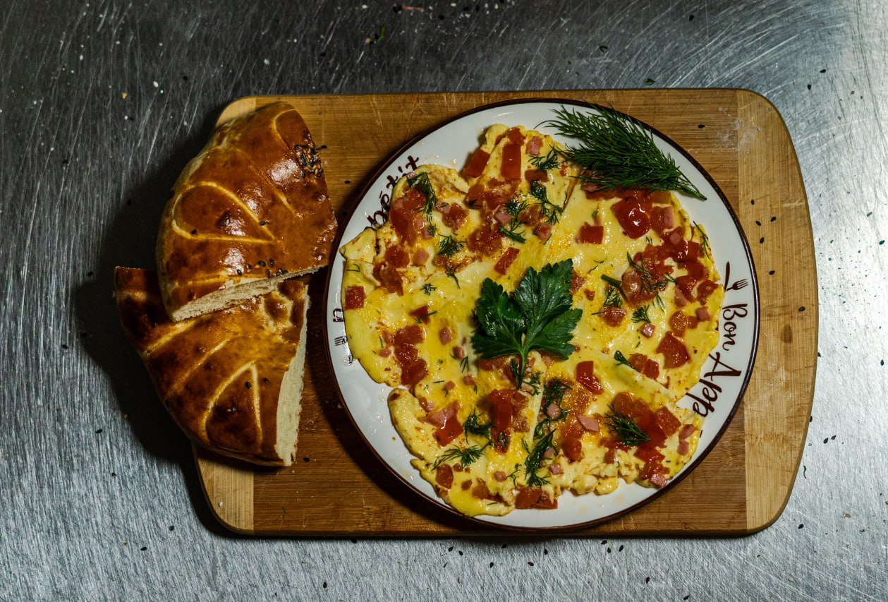 Омлет — нежное блюдо из свежих яиц, приготовленное на сливочном масле до воздушной консистенции. Может подаваться классическим способом или дополняться начинками: сыром, овощами, зеленью или ветчиной. Идеален для завтрака или легкого перекуса.
